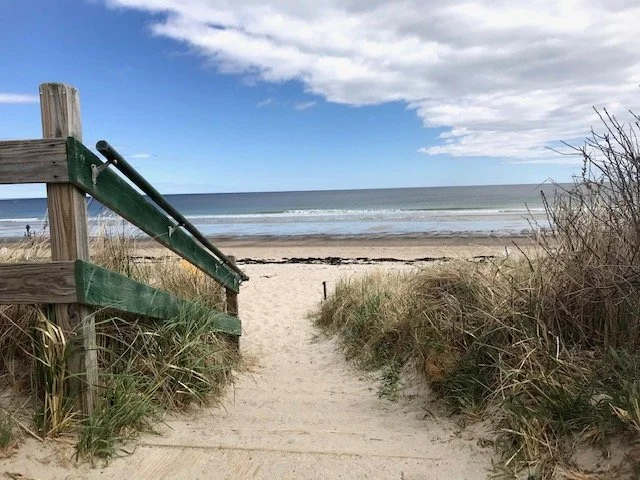 I like the beach roses at our beach, but I also like the walkway and fence at Biddeford Pool, so I combined the two: